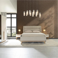 - Bettgestell: Stabile Konstruktion mit integriertem Bettkasten für zusätzlichen Stauraum und einem erhöhten Design, das den Raum luftig und modern wirken lässt.