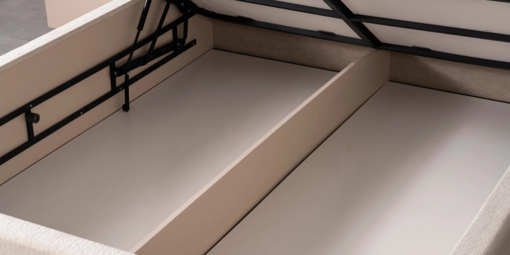- Bettgestell: Stabile Konstruktion mit integriertem Bettkasten für zusätzlichen Stauraum und ein funktionales Design.